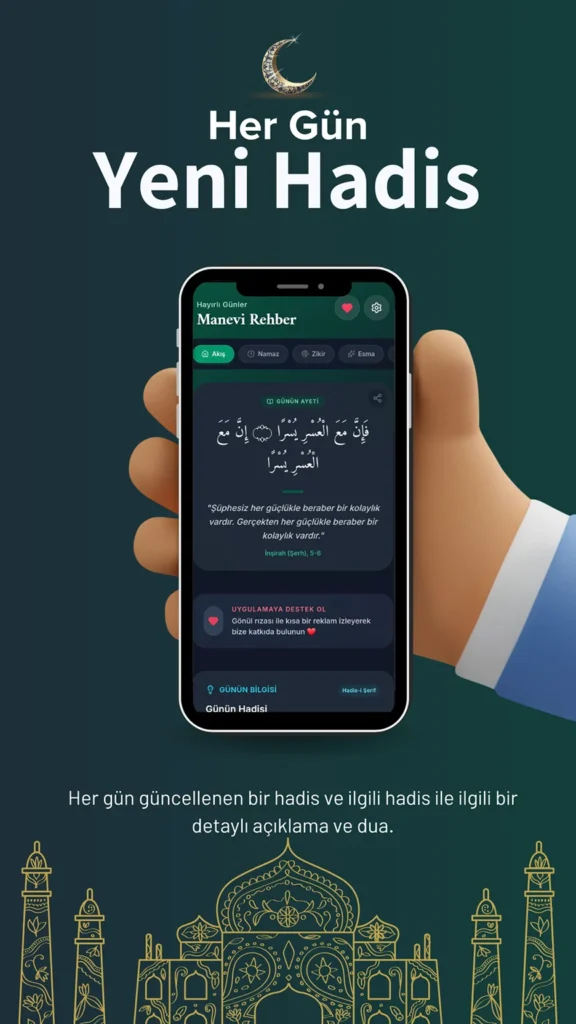 İşten ayrıldığım ve zihinsel olarak yorulduğum bir dönemde, maneviyatımı güçlü tutmam gerektiğini hissediyordum. Günlük olarak ayet, hadis ve Esmaül Hüsna içeriklerini takip etmek; hem kendime düzenli bir hatırlatma hem de sosyal medya hesaplarımda paylaşabileceğim anlamlı bir içerik üretme alanıydı.